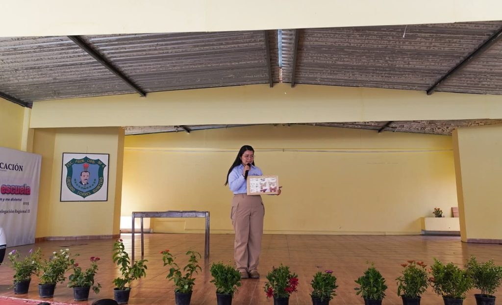 La también representante legal del Municipio hizo un reconocimiento público a los padres de familia, ya que son parte fundamental para que la educación en San Miguel mejore en cada generación familiar.