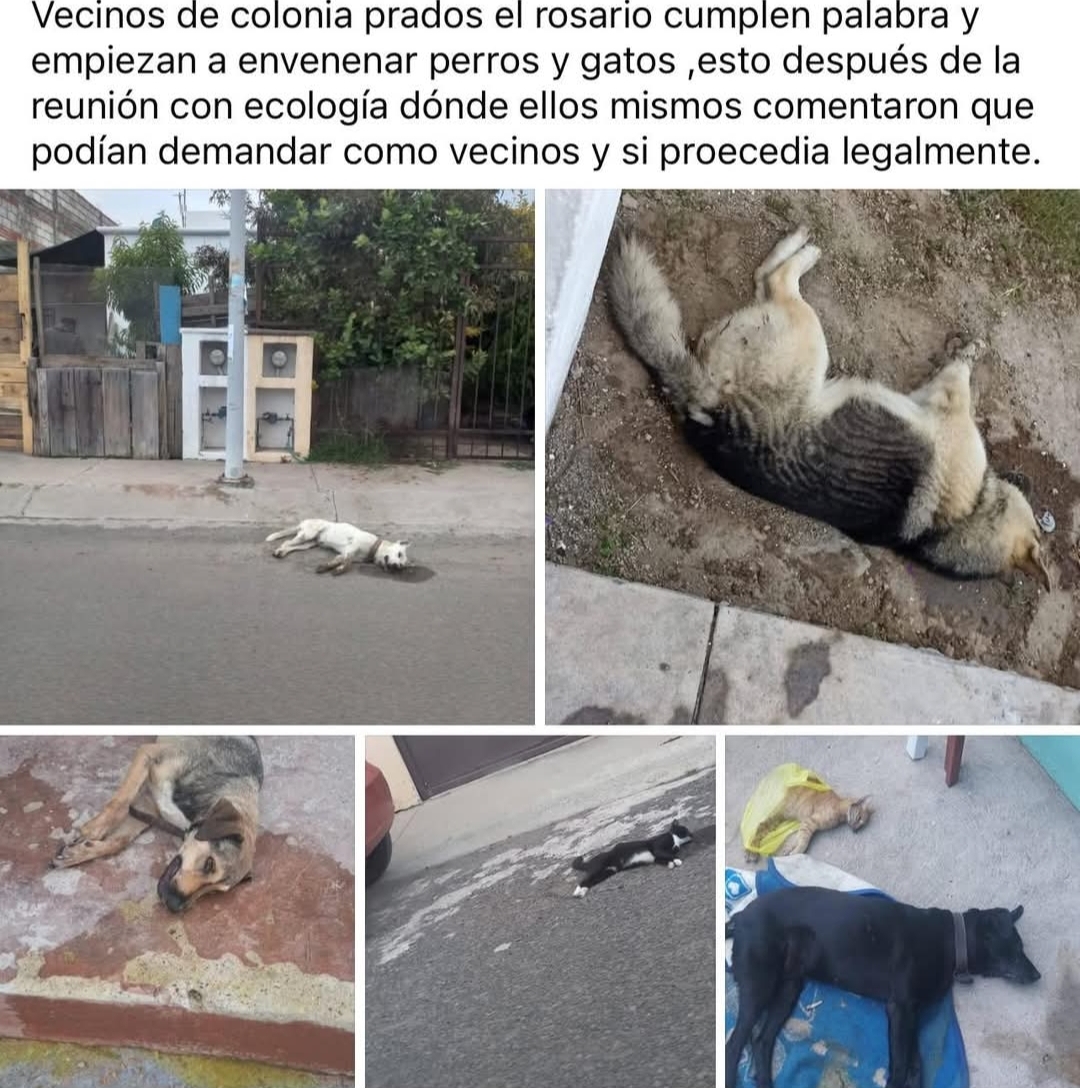De acuerdo con testimonios de residentes, la situación se habría gestado en días pasados, cuando en un grupo vecinal de WhatsApp se manifestaron quejas sobre la sobrepoblación de animales callejeros. En dichas conversaciones, se llegó a sugerir el envenenamiento como una «solución», una amenaza que hoy parece haberse materializado.