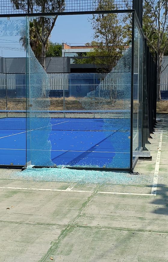 Se desconoce si fue un mandalismo intencional o un accidente lo que terminó por reventar uno de los vidrios de la cancha de tenis en la unidad deportiva.