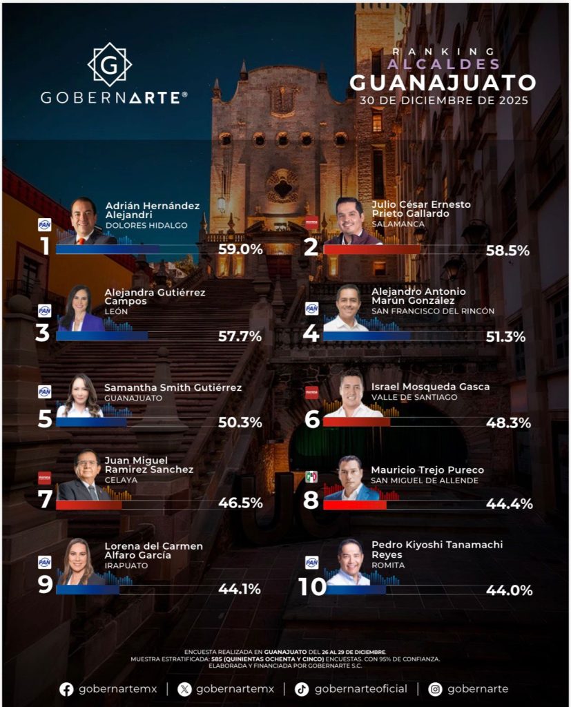 La consulta ciudadana es elaborada por la empresa GOBERNARTE S.C.V., misma que mes con mes realiza encuestas a los ciudadanos guanajuatenses.