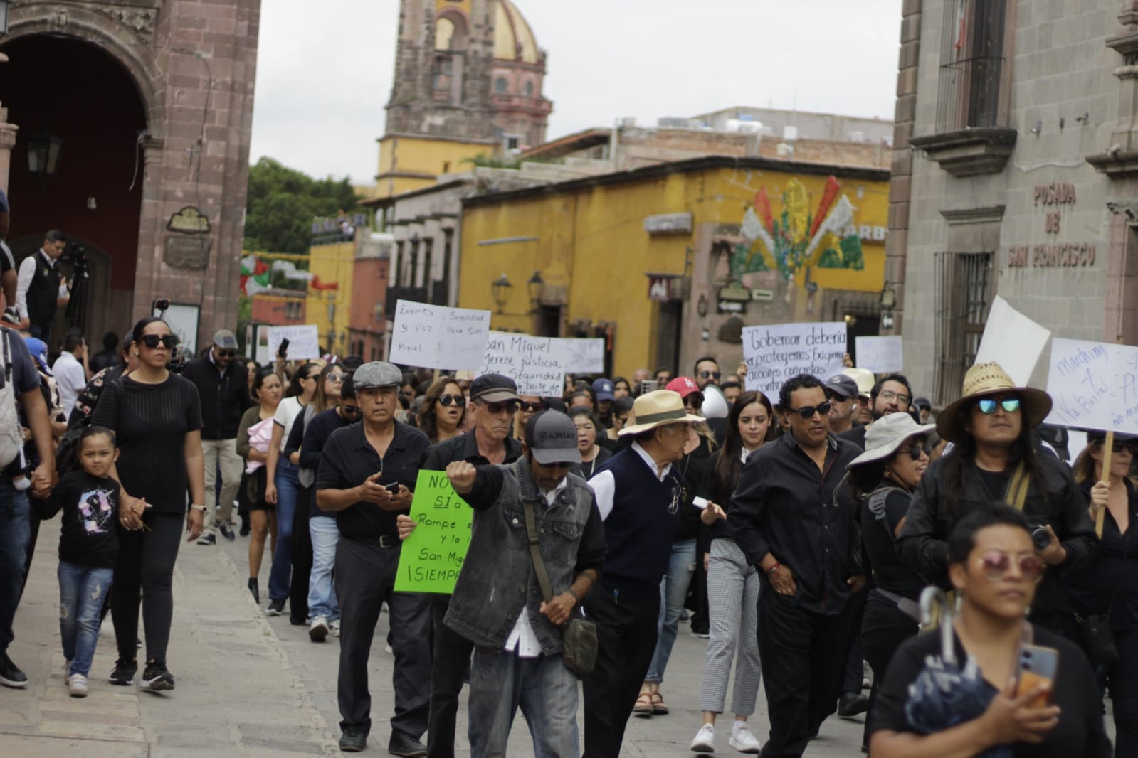 La manifestación inició a las 10 de la mañana en la calle El Cardo, donde decenas de ciudadanos y familias, vestidos de negro, se congregaron con pancartas para emprender su camino hacia la Parroquia de San Miguel Arcángel. La marcha recorrió calles emblemáticas como Ancha de San Antonio, Zacateros, Canal y Plaza Principal.